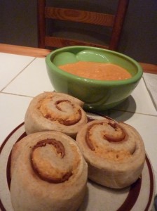 An old pic of the soup with faux ham and daiya swirly buns