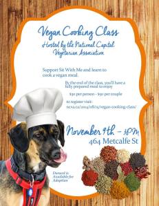 Support Sit With Me Shelter Dog Rescue and learn how to cook a vegan meal. By the end of the class, you’ll enjoy a prepared meal and take home a recipe book of all the delicious foods you learned to make that day. The course will include an appetizer, soup, main course, dessert and a snack!