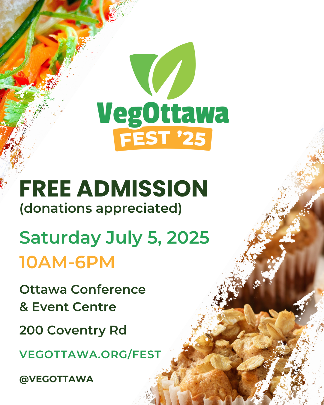 VegOttawa Fest is a celebration of plant-based living! Free to attend and open to everyone, this event is a great place to try new foods, meet new people, and learn about the vegan movement. Visit vegottawa.org/fest for more details.