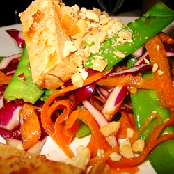 3. Toss the peas, carrots, cabbage, and peanuts with the tofu and marinade to serve.