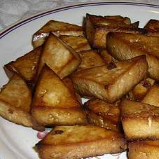Fried Tofu: Slice firm tofu in 1/2 x 1″ pieces, marinate in soy sauce 5 minutes, then fry both sides until crispy. This can be placed into pasta, rice, casseroles, stir fries, etc…Tofu can be marinated in any sauce you love. Add garlic or ginger (or any other favourite) to tailor the taste of the tofu to your liking.