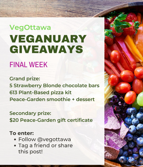 Earlier this year, we held weekly challenges and giveaways on our VegOttawa Instagram page to celebrate Veganuary – a month dedicated to encouraging a vegan lifestyle. While many of our followers are already vegan, it was also a great opportunity to celebrate, share experiences and facts, and win vegan prizes!