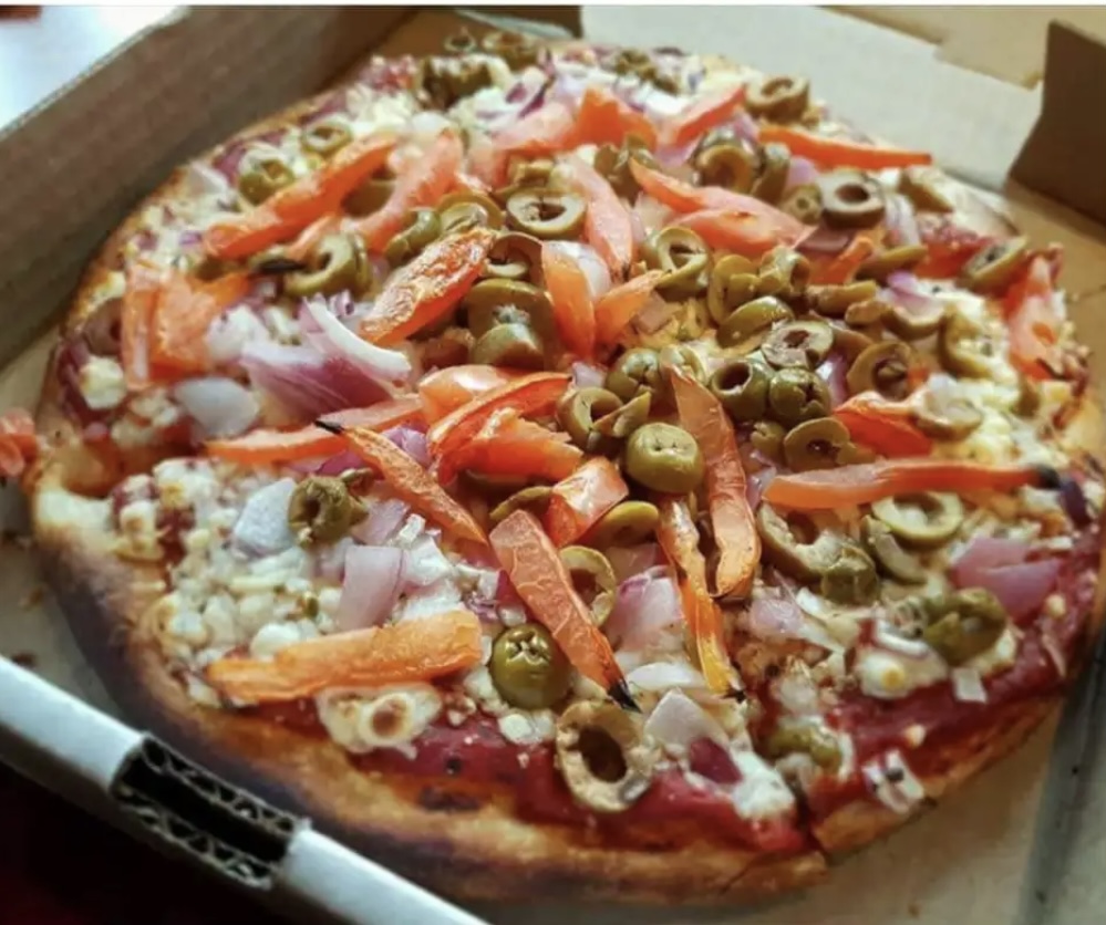 Hometown Sports Grill – featuring a large vegan menu, their vegan pizza includes Italian tomato sauce, vegan pepperoni, mushrooms, green peppers, red onions and black olives. You can enjoy your pizza with friends while watching a game in their dining area or order your pizza to go. Other vegan menu items include vegan poutine, chick’n tender platter, southwest nachos and cauliflower wings.