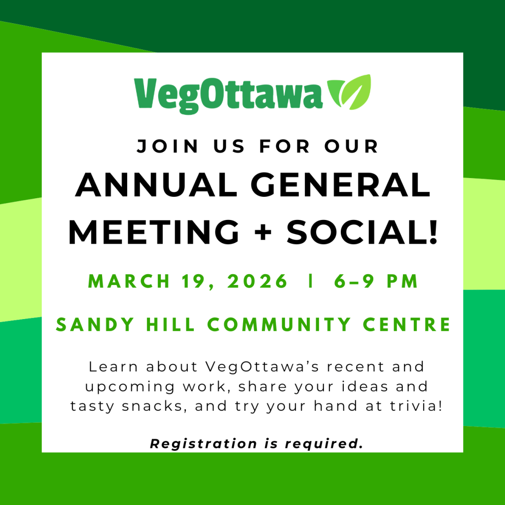 Come hear about what VegOttawa has been working on over the past year, learn what’s to come in 2026, share your perspectives, and help shape the plant-based community in Canada’s capital!