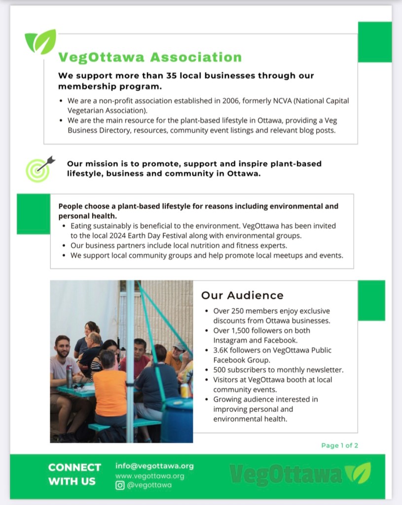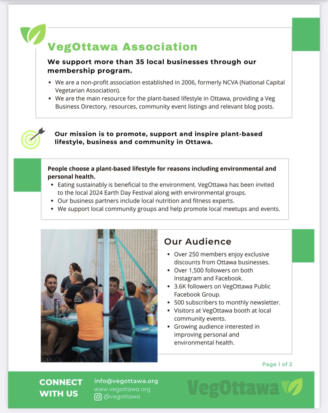 VegOttawa can provide guest blog posts or Q&A on relevant topics such as eating for environmental sustainability and health benefits as well as plant-based advocacy. See our media kit for more info. We’d love to collaborate with local media and vegan-friendly accounts! Also see our Business Partner page for Sponsorship opportunities.